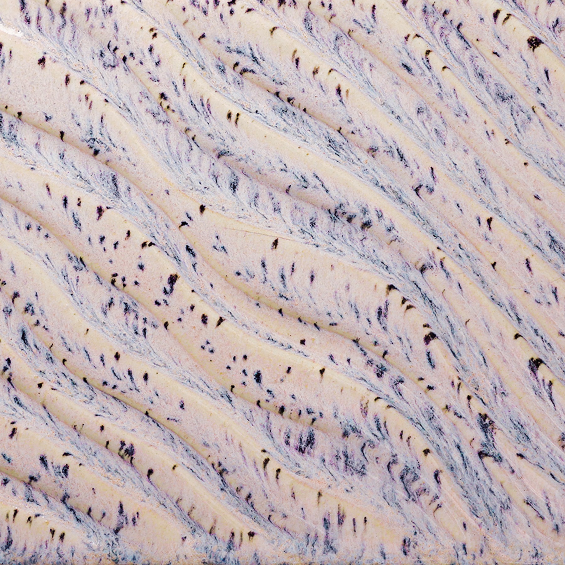 PCF-16 Aurora Breeze is a hazy pink glaze with hints of blue and purple and dark speckles. It breaks across textured surfaces, developing a warm blush float when thick. Great for layering with other glazes as a base or top coat. Beautiful on any color of clay.