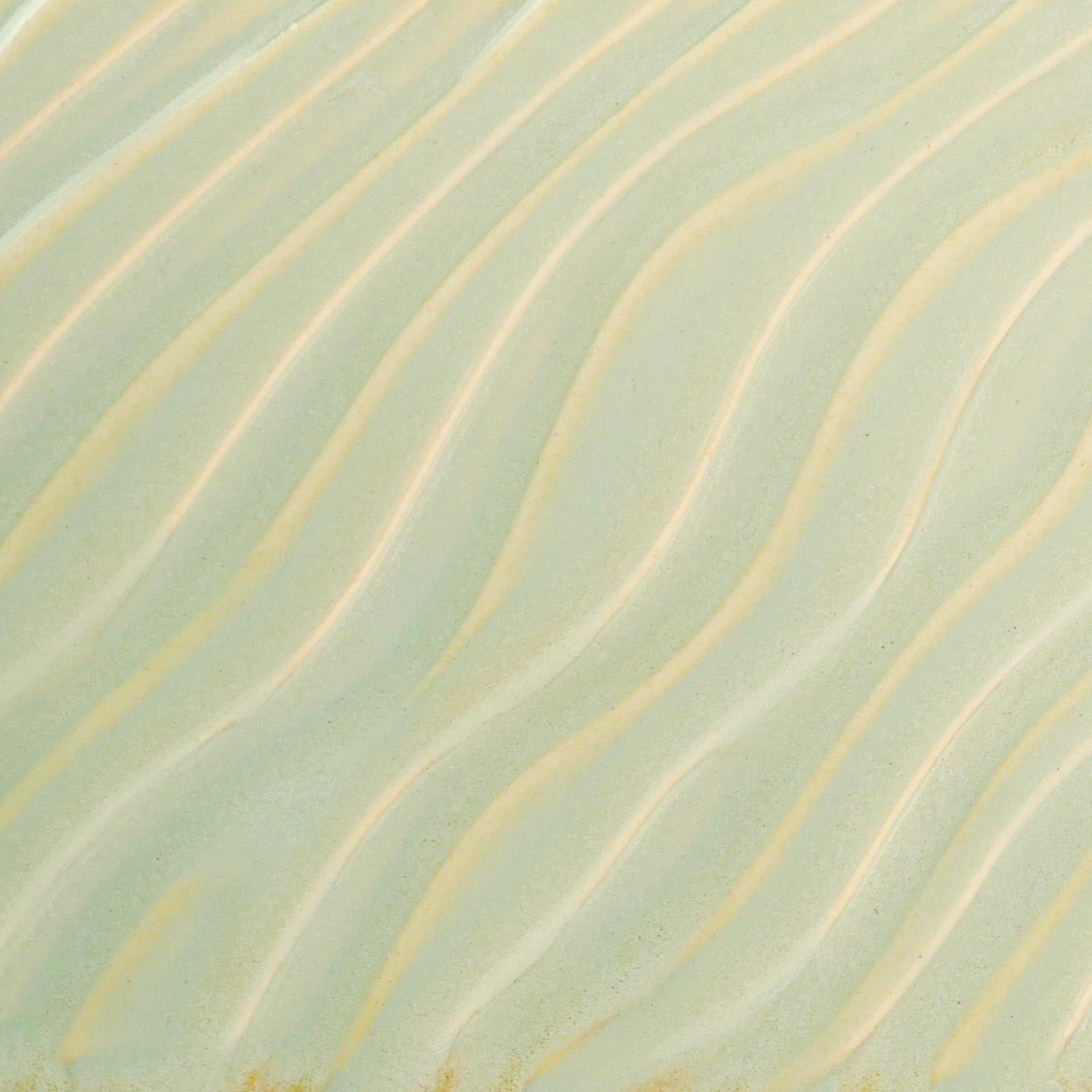PCF-18 Honeydew is a glossy pale green glaze like the melon it’s named for. It breaks across textured surfaces and develops a peachy float when thick. Great for layering with other glazes as a base or top coat.