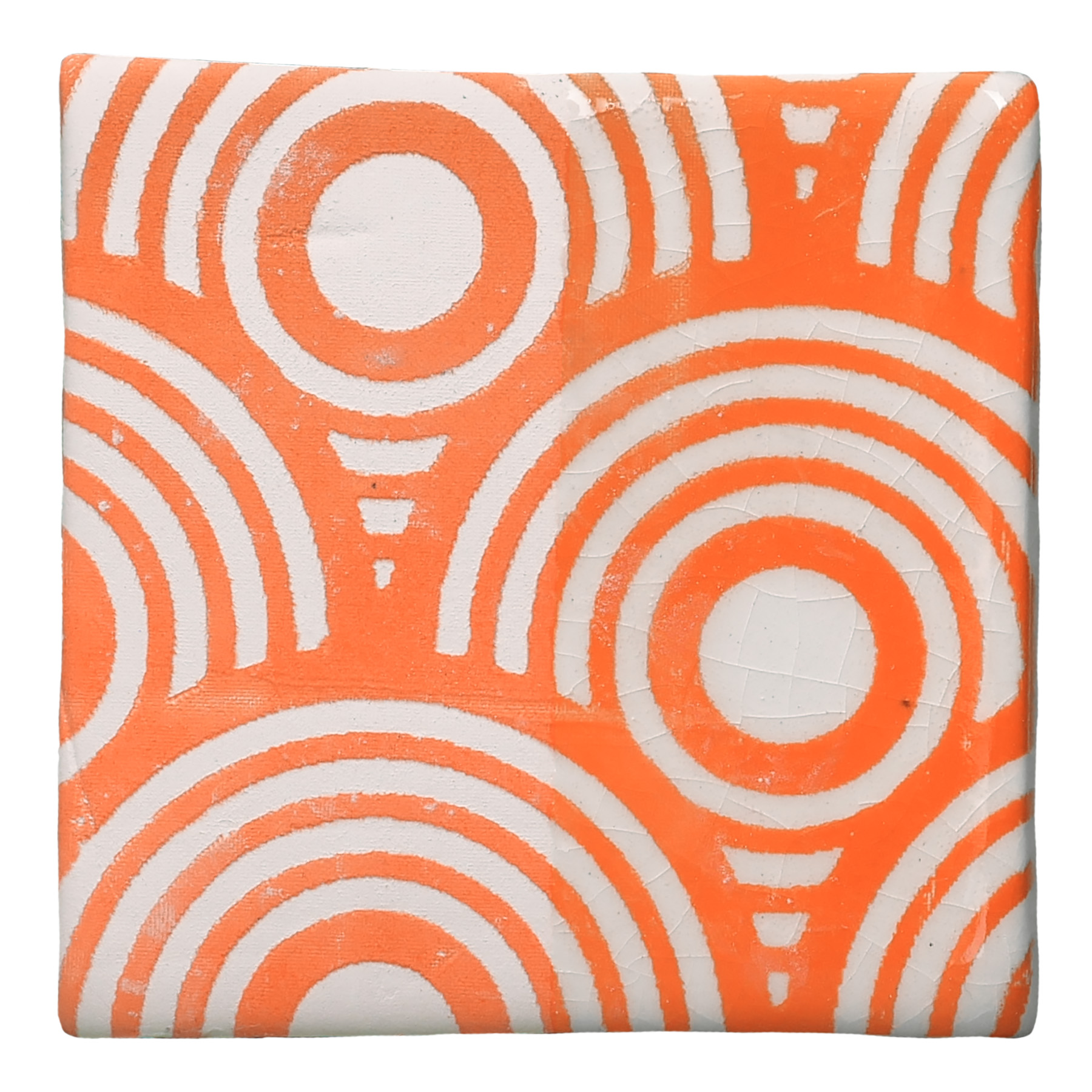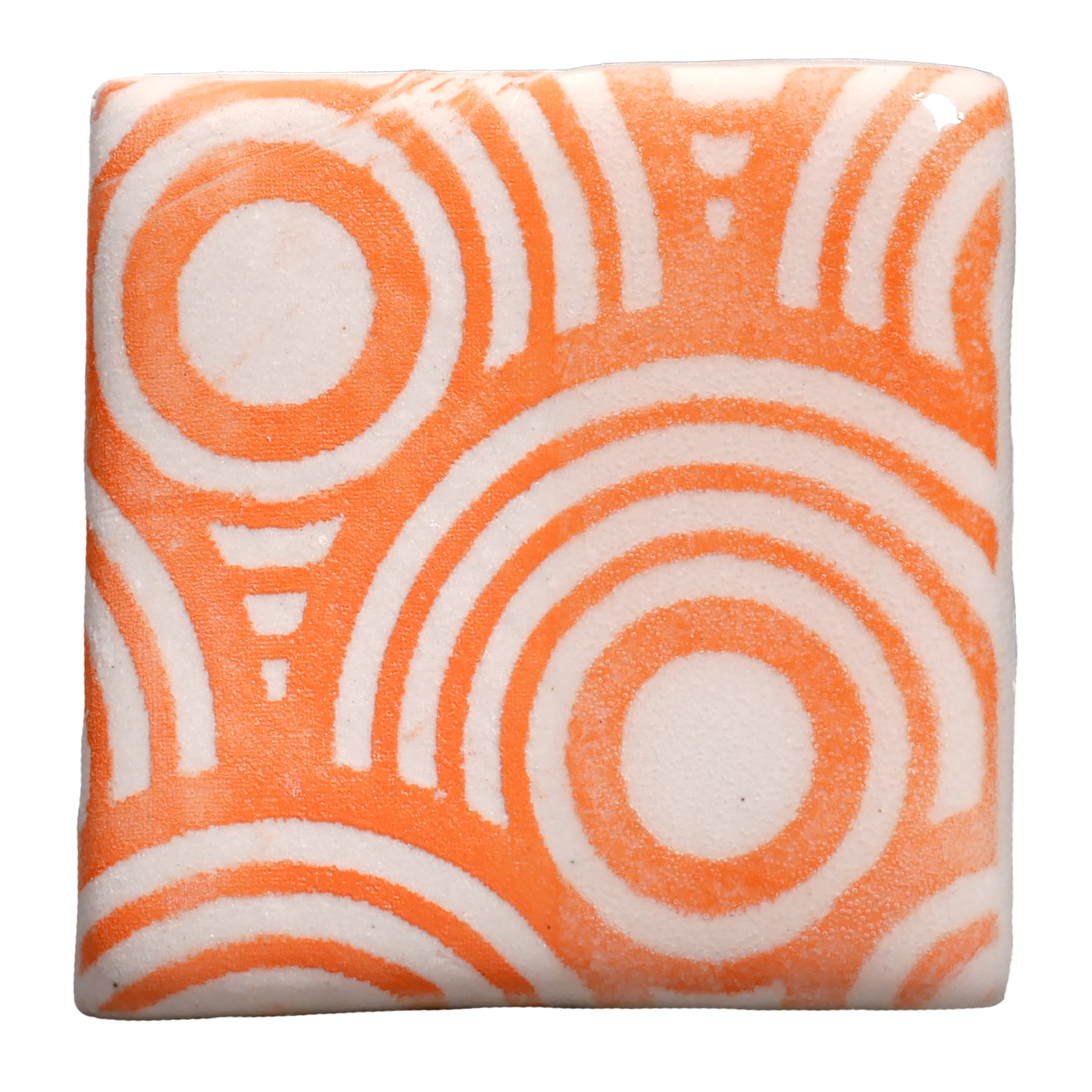 VI-90 Bright Orange Matte Ink is a tangerine color that is neon at cone 05, darkens slightly at cone 5 and becomes a deep pumpkin at cone 10. A clear glaze accentuates the final, fired color.