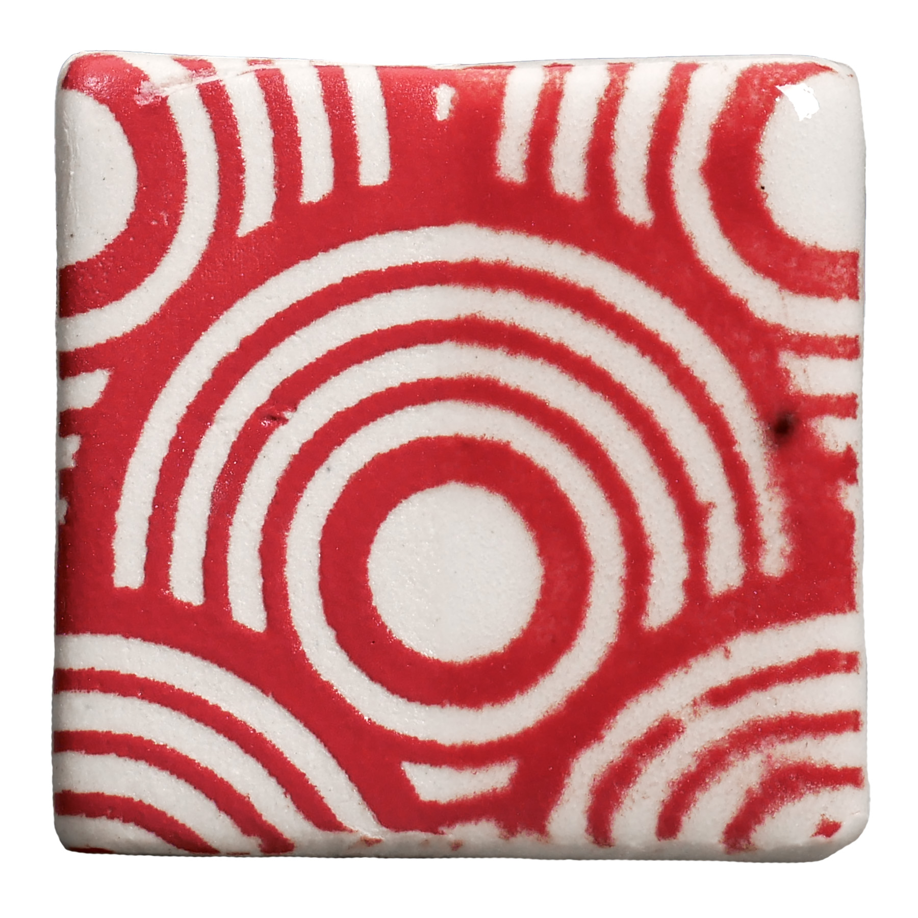 Like an underglaze, this Bright Red Matte Ink fires to a matte finish that requires a clear glaze to be considered food-safe.