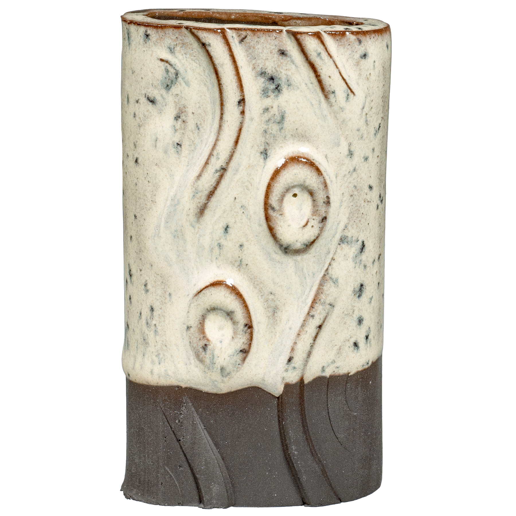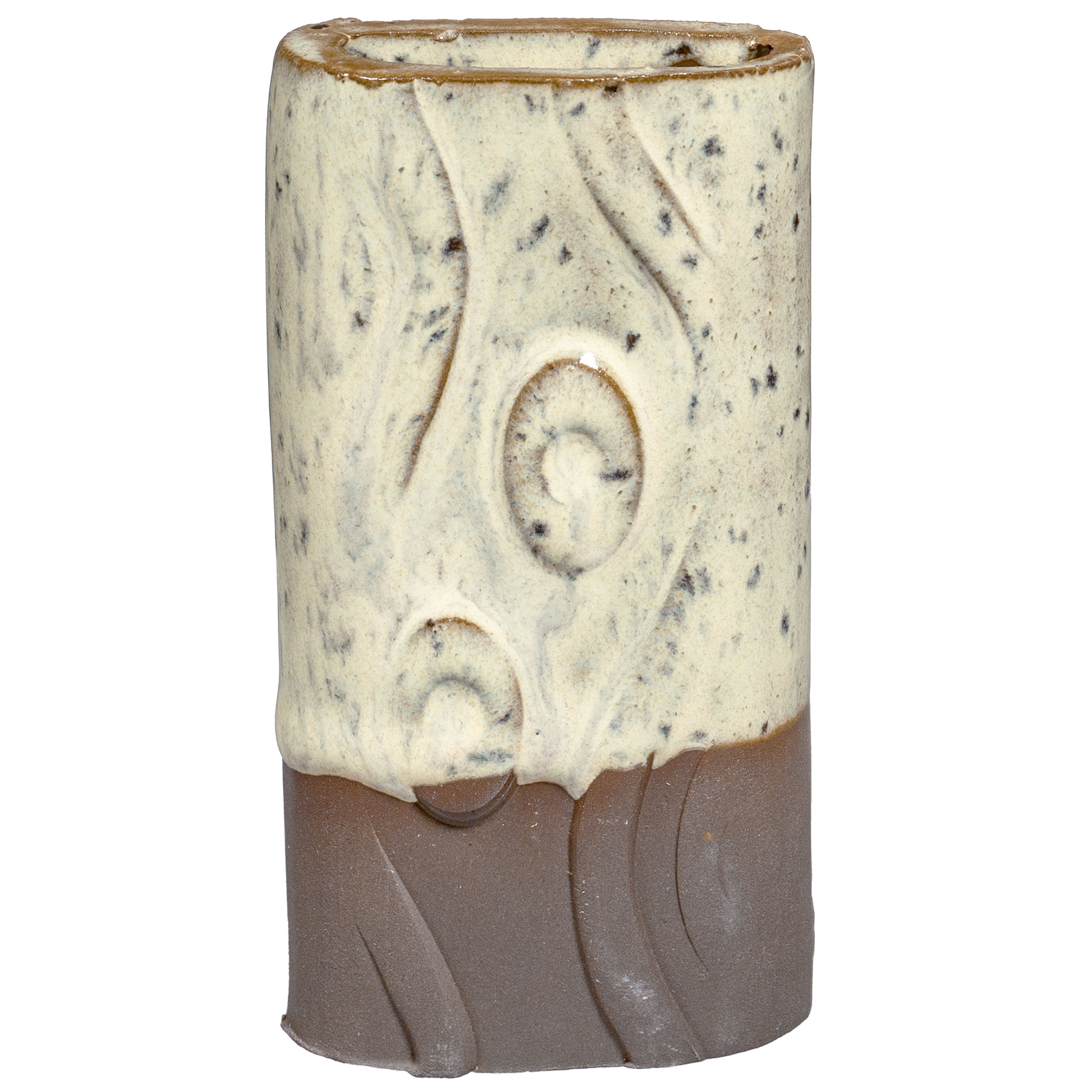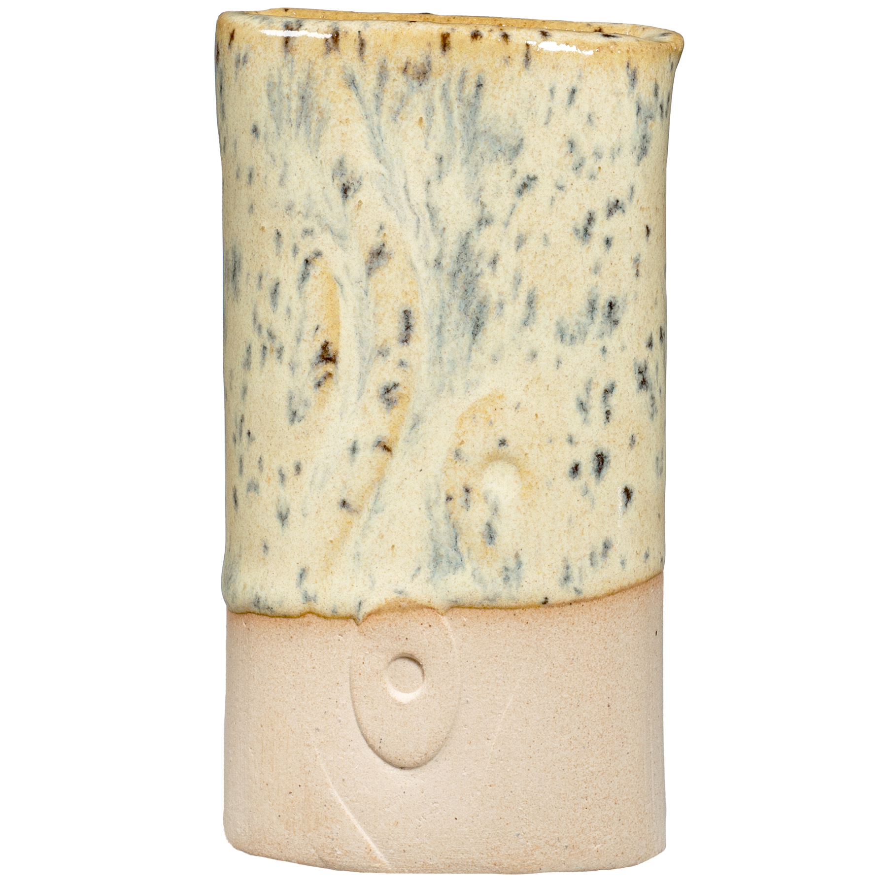 PCF-63 Sun Shower is a pale yellow interspersed with fine, dark speckles. It breaks across textured surfaces and develops a warm blush float when thick. Great for layering with other glazes as a base or top coat.