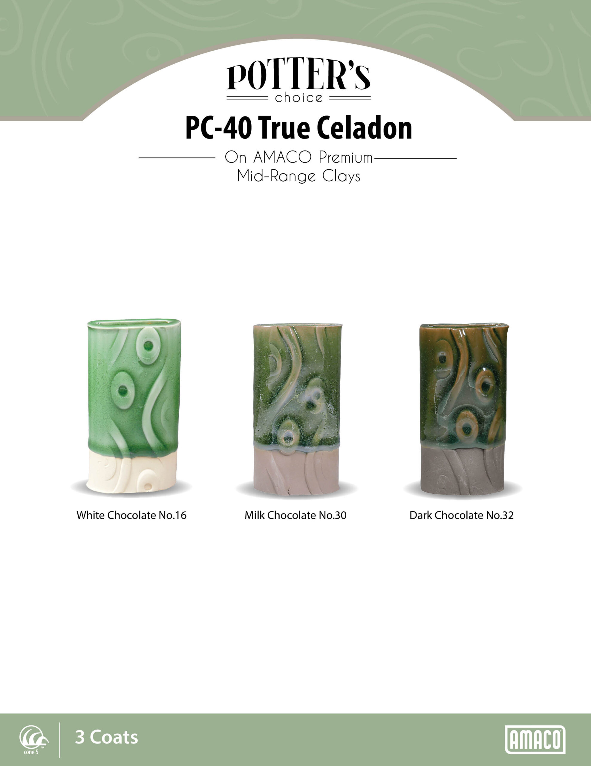 True Celadon is a delicate light green glaze that reproduces the effects of traditional Asian celadons. This glaze looks striking over any textured ware and has great color response when layered with our other Potter’s Choice glazes.